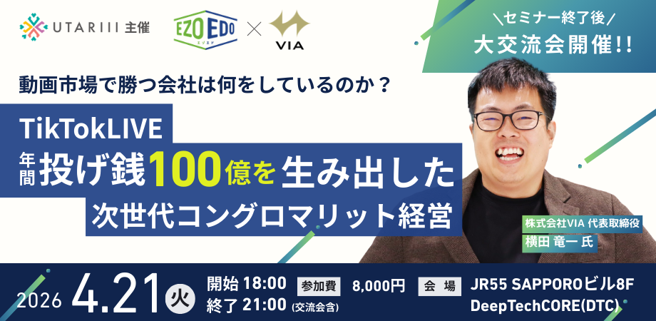 年間投げ銭100億円超を突破したTikTokLIVEメジャーエージェント・株式会社VIA代表 横田氏が登壇!次世代コングロマリット戦略を語る「EzoEdo」4月21日(月)札幌で開催